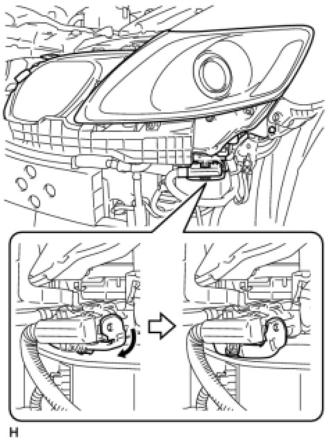 (a) Turn the headlight No. 2 bulb in the direction indicated by the arrow and install it.
