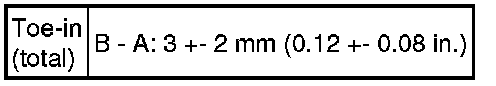 If the toe-in is not within the specified range, inspect the suspension parts and replace if necessary.