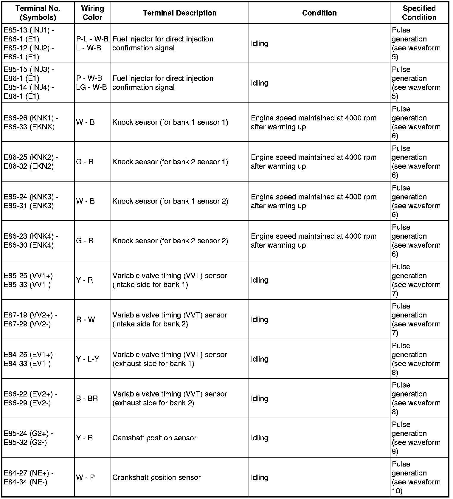 Injector for direct injection No. 1 (to No. 8) injection signal and Injection confirmation signal: