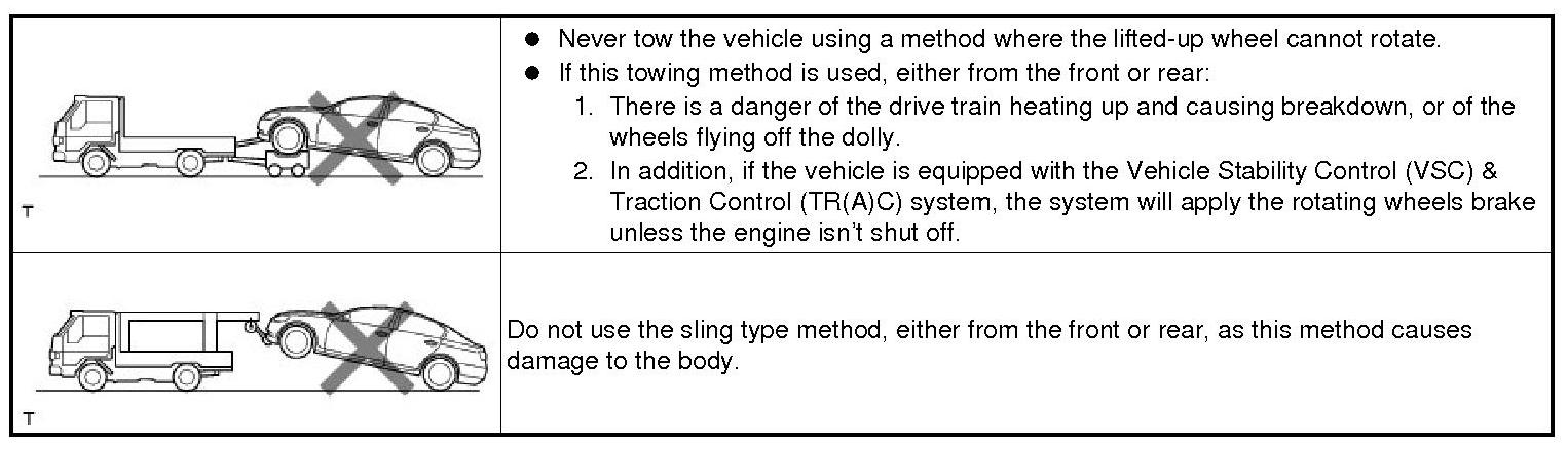 For example, the towing methods shown below are dangerous or damage the vehicle, so do not use them.