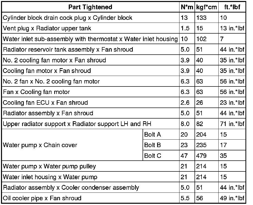 SERVICE SPECIFICATIONS: 1UR-FSE COOLING: TORQUE SPECIFICATIONS