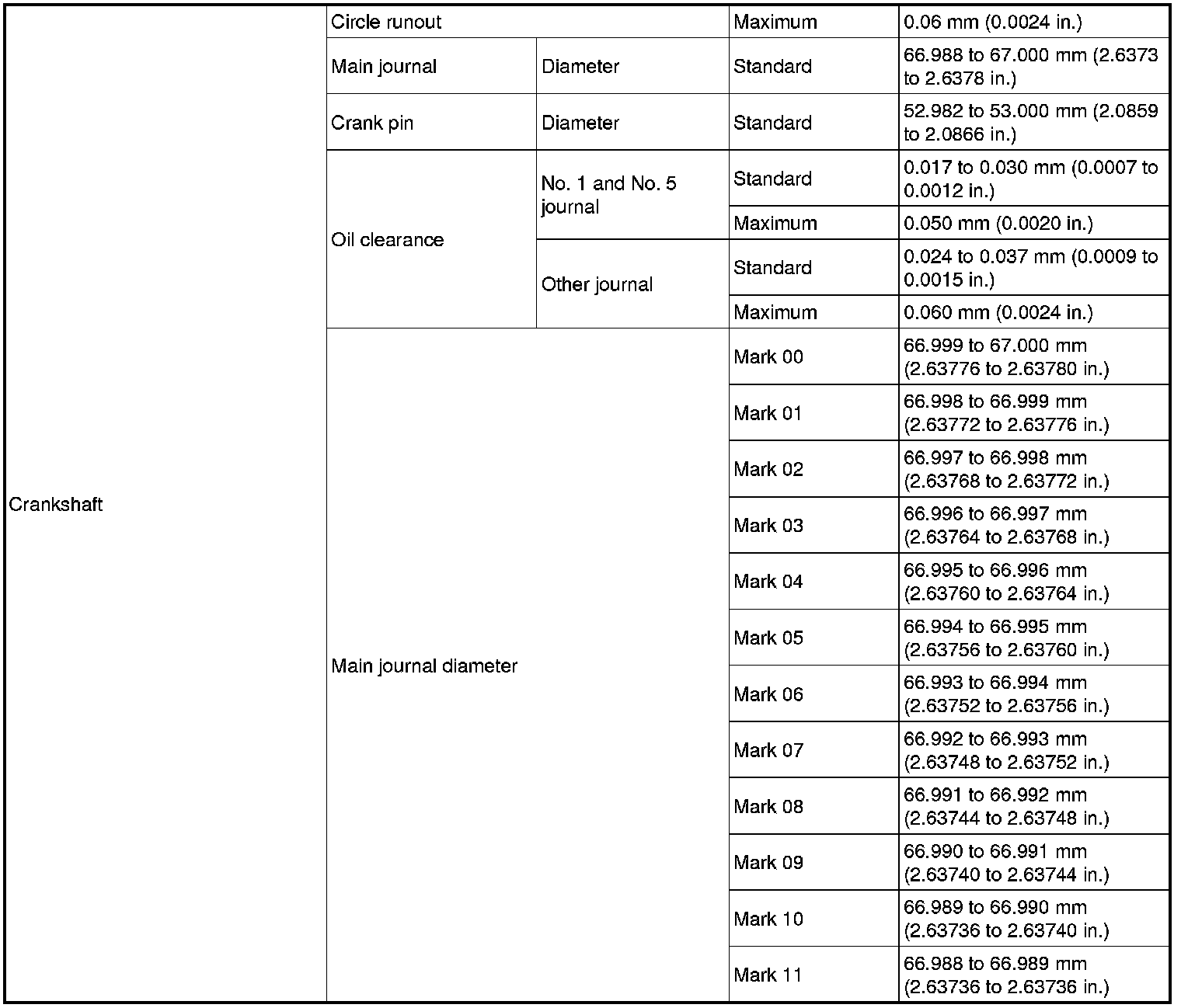 SERVICE SPECIFICATIONS: 1UR-FSE ENGINE MECHANICAL: SERVICE DATA