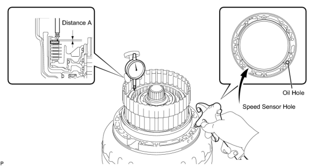 (a) Measure length A (from the step of the oil pump installation surface of the transmission case to the step of the No. 1 brake flange installation surface) in the illustration.*1
