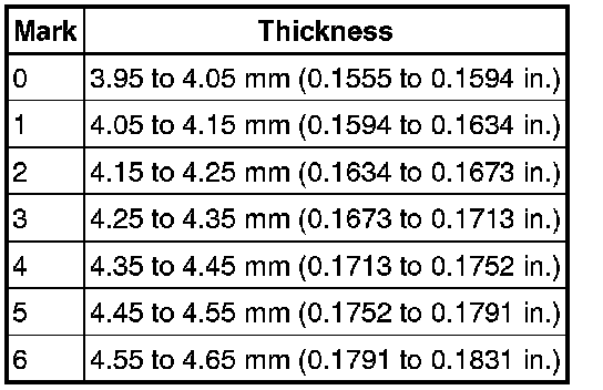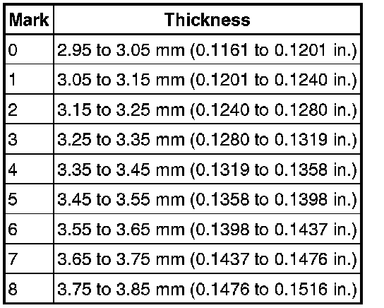(d) Choose a No. 1 brake flange from the table so that the value of measured length A minus lengths B and C (from steps *1, *2, *3) will be 0.75 to 1.05 mm (0.0295 to 0.0413 in.).