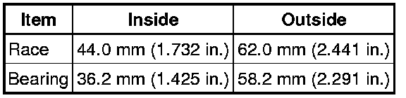 Standard bearing and race diameter: