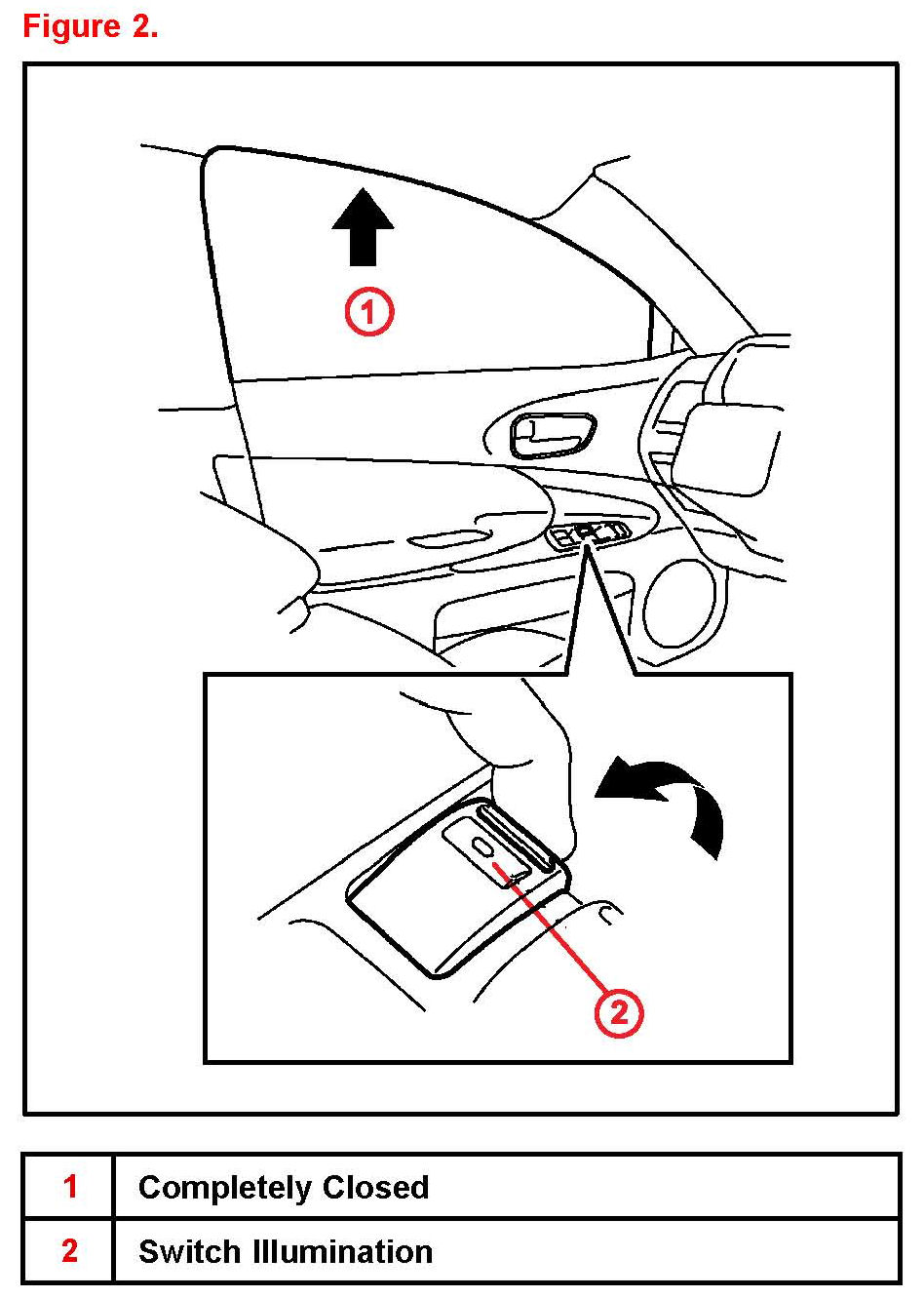 ^ At this time, the driver's door power window switch will stop blinking and the light will remain illuminated.