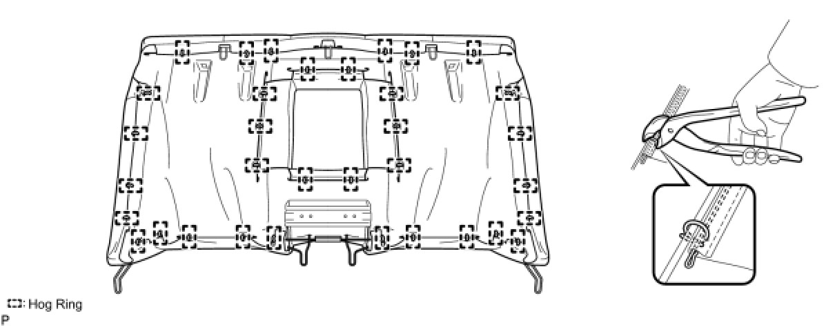 (a) Using hog ring pliers, install the seat cushion cover to the seat cushion frame (with pad) with new hog rings.