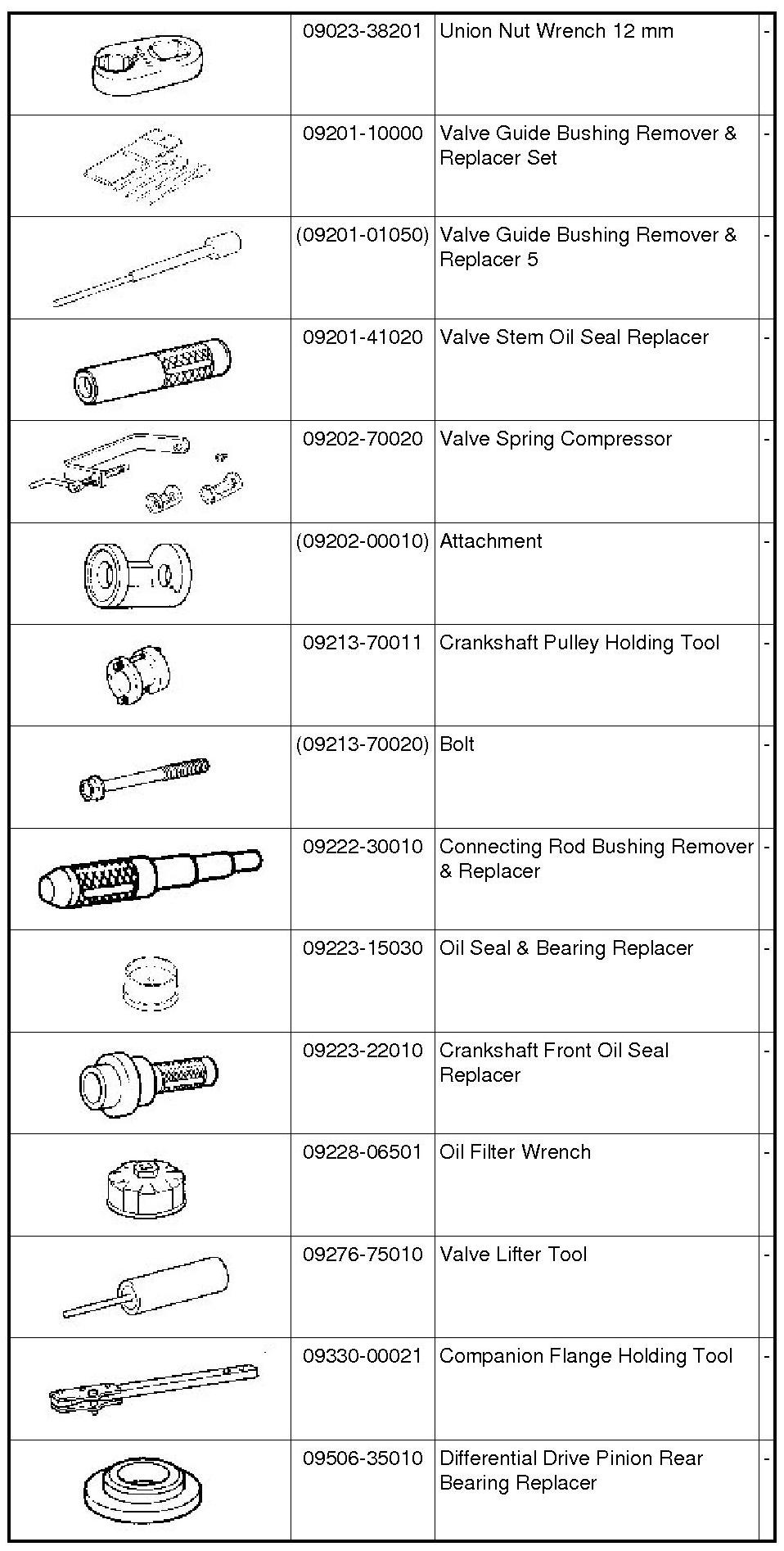 PREPARATION: 4GR-FSE ENGINE MECHANICAL: SST