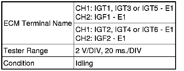 Igniter IGT signal (from ECM to igniter) and Igniter IGF signal (from igniter to ECM):