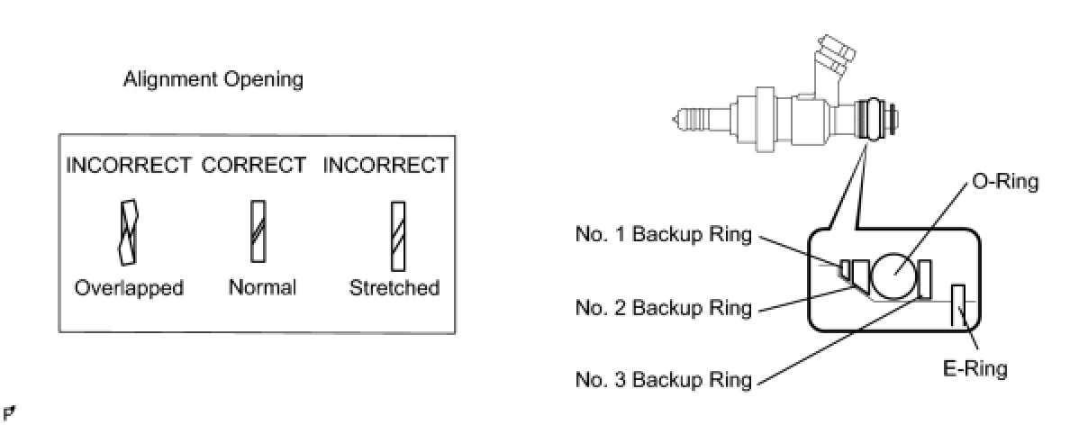 * Check that the alignment openings of the backup rings are not overlapped or stretched as shown in the illustration.