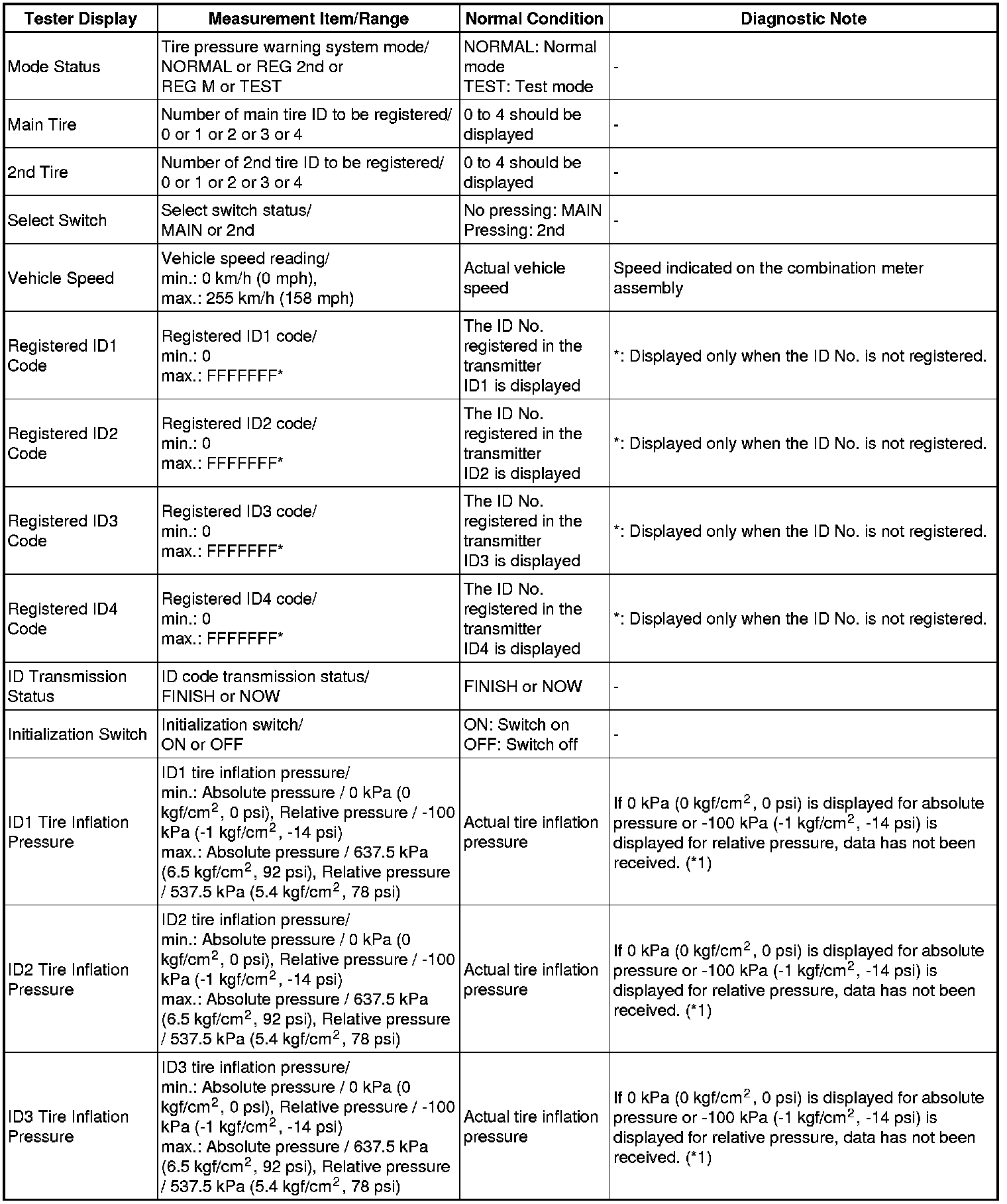 TIRE AND WHEEL: TIRE PRESSURE WARNING SYSTEM: DATA LIST / ACTIVE TEST