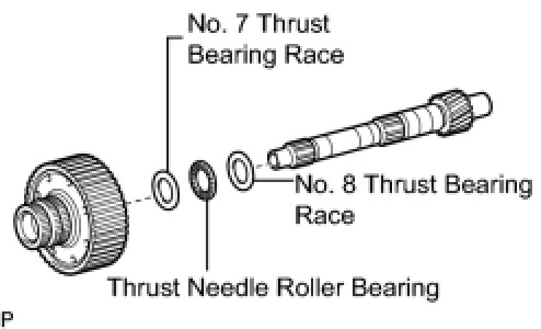 (a) Install the No. 8 thrust bearing race, the thrust needle roller bearing, the No. 7 thrust bearing race and the planetary ring gear flange to the intermediate shaft.