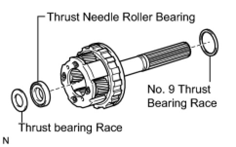 (c) Coat the No. 9 thrust bearing race and thrust bearing race with petroleum jelly, and install them onto the rear planetary gear.