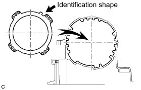 Ensure that the identification shape of the brake piston return spring faces the upper right side as shown in the illustration.