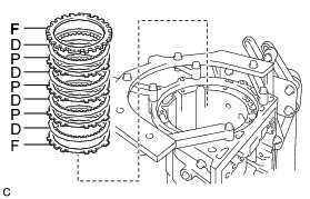 (c) Install the front planetary gear assembly and the one way clutch inner race to the case.