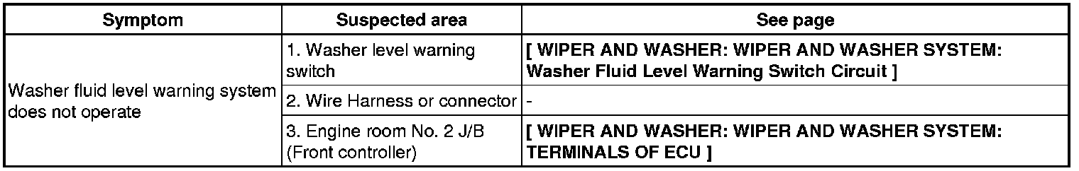 WIPER AND WASHER: WIPER AND WASHER SYSTEM: PROBLEM SYMPTOMS TABLE