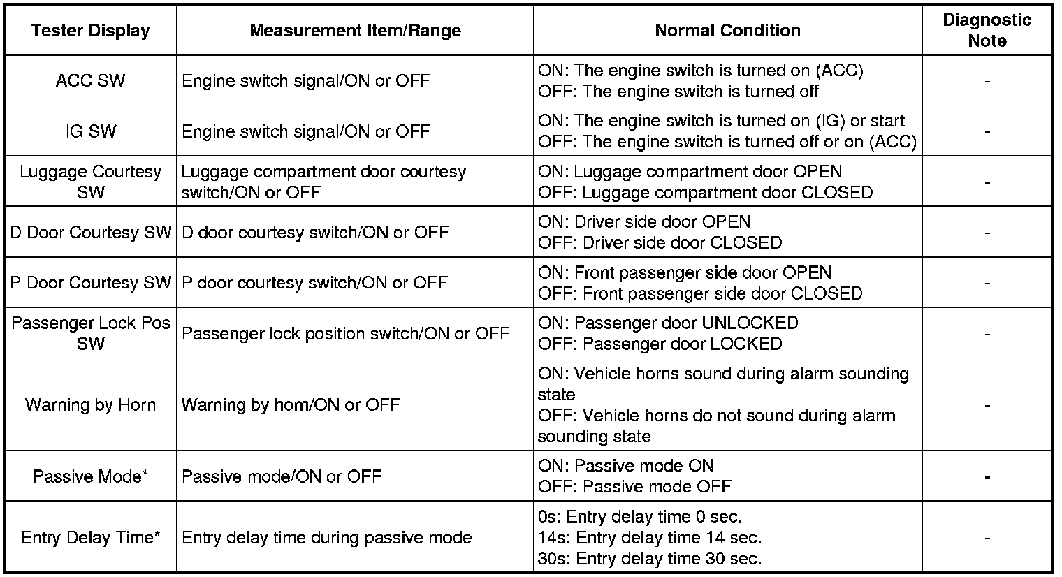 THEFT DETERRENT / KEYLESS ENTRY: THEFT DETERRENT SYSTEM: DATA LIST / ACTIVE TEST