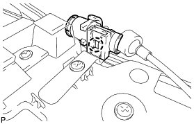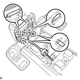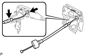 (a) Engage the 2 cable clamps to install the rear seat lock control cable to the center rear back lock control lever.
