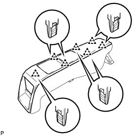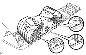 (a) Engage the 6 claws to install the rear seat center armrest cup holder sub-assembly to the No. 1 rear seat center armrest panel.
