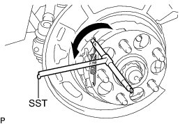 (a) Using SST, remove the No. 1 shoe hold down spring cup, No. 1 compression spring and No. 1 shoe hold down spring pin.