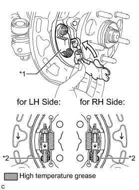 (a) Apply a thin layer of high temperature grease to the area where the parking brake shoe lever sub-assembly contacts the parking brake anchor block sub-assembly.