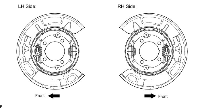 Be sure to install the parking brake shoe lever sub-assembly in the correct position and direction because the direction of the pin is different between the LH side and RH side.
