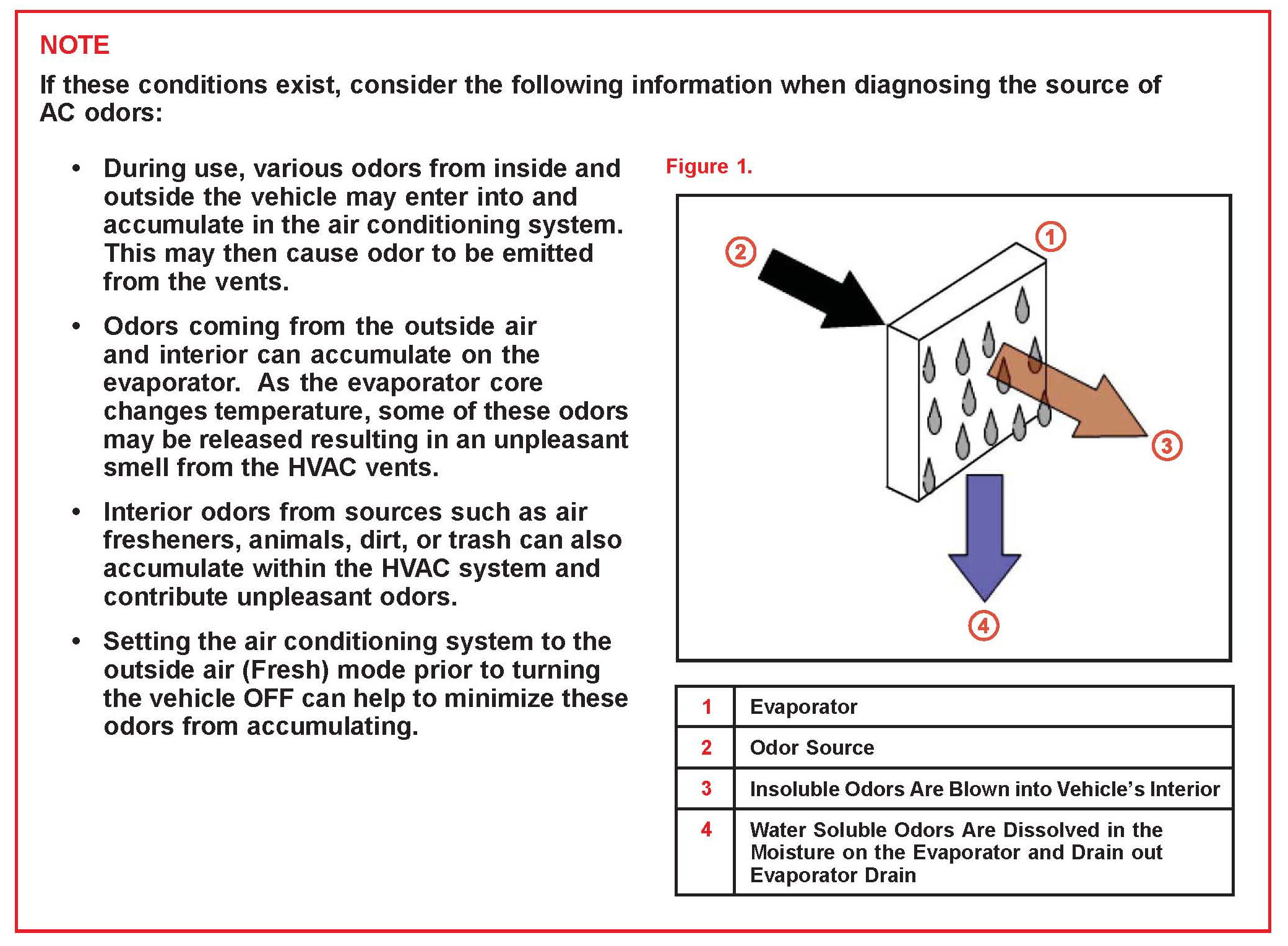 If the unpleasant odor does not start immediately after the HVAC system is turned "ON" or continues for more than 30 seconds this TSIB does NOT apply