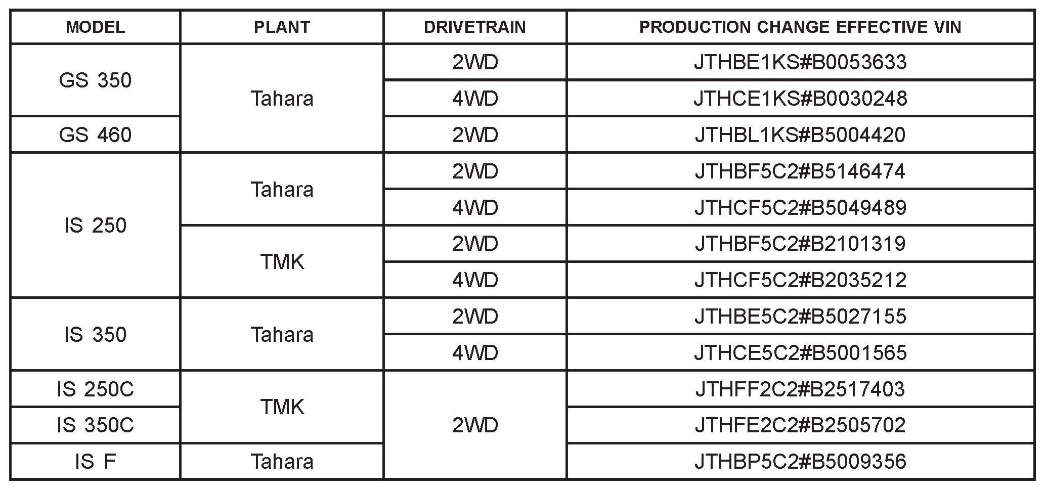 This TSIB applies to vehicles produced BEFORE the Production Change Effective VINs shown.