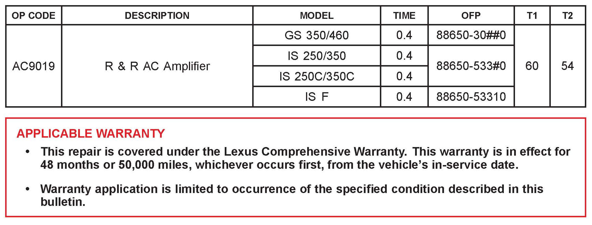 3. Install the updated A/C amplifier Refer to the Technical Information System (TIS), applicable model and model year Repair Manual: