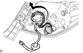 (a) Turn the rear turn signal light bulb and the rear combination light socket and wire sub-assembly in the direction indicated by the arrow in the illustration and disconnect them as a unit.