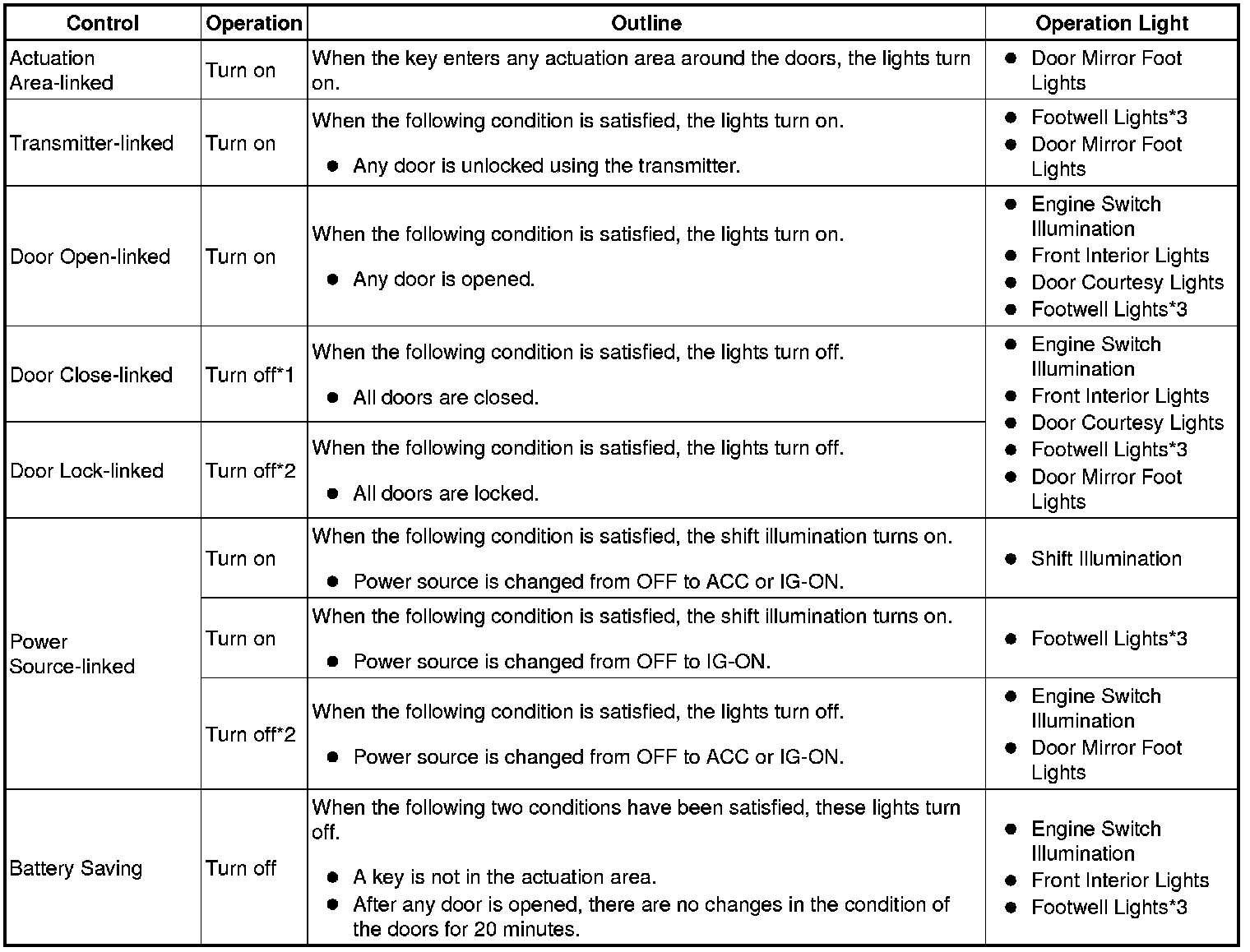 *1: Illuminates for approximately 15 seconds, then fades out over three seconds.