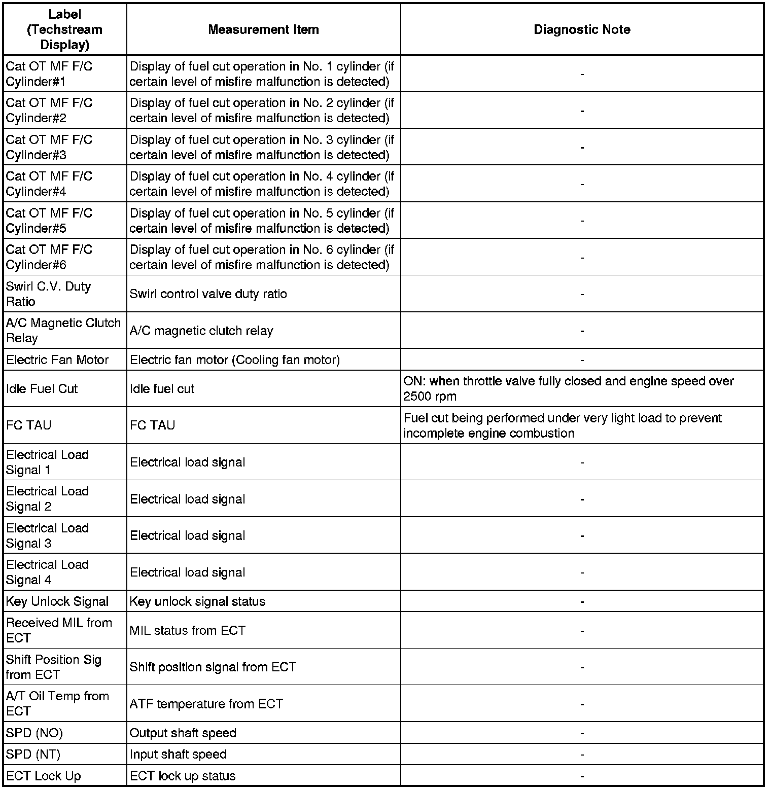 The ECM records engine conditions in the form of freeze frame data every 0.5 seconds. Using the Techstream, 5 separate sets of freeze frame data, including the data values at the time when the DTC was set, can be checked.
