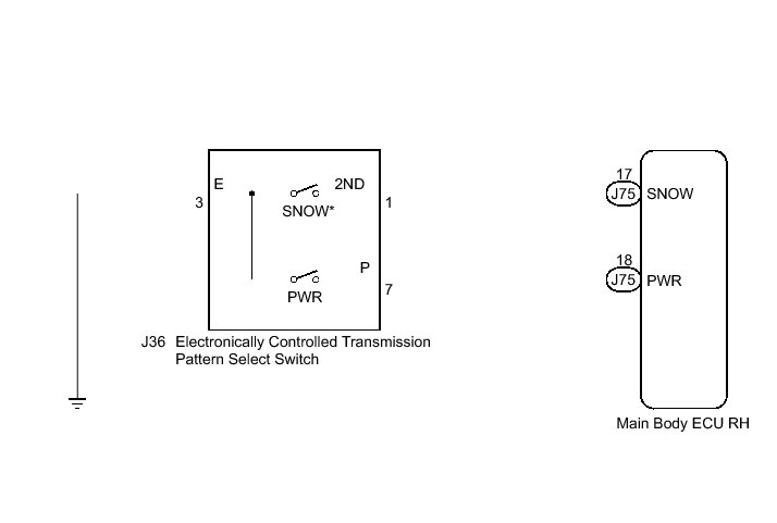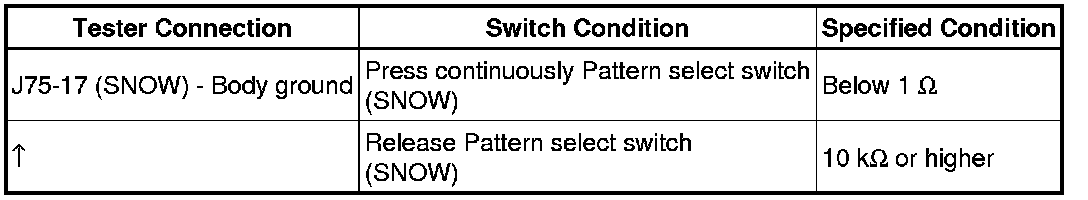 A960E AUTOMATIC TRANSMISSION / TRANSAXLE: AUTOMATIC TRANSMISSION SYSTEM: Pattern Select Switch Snow Mode Circuit