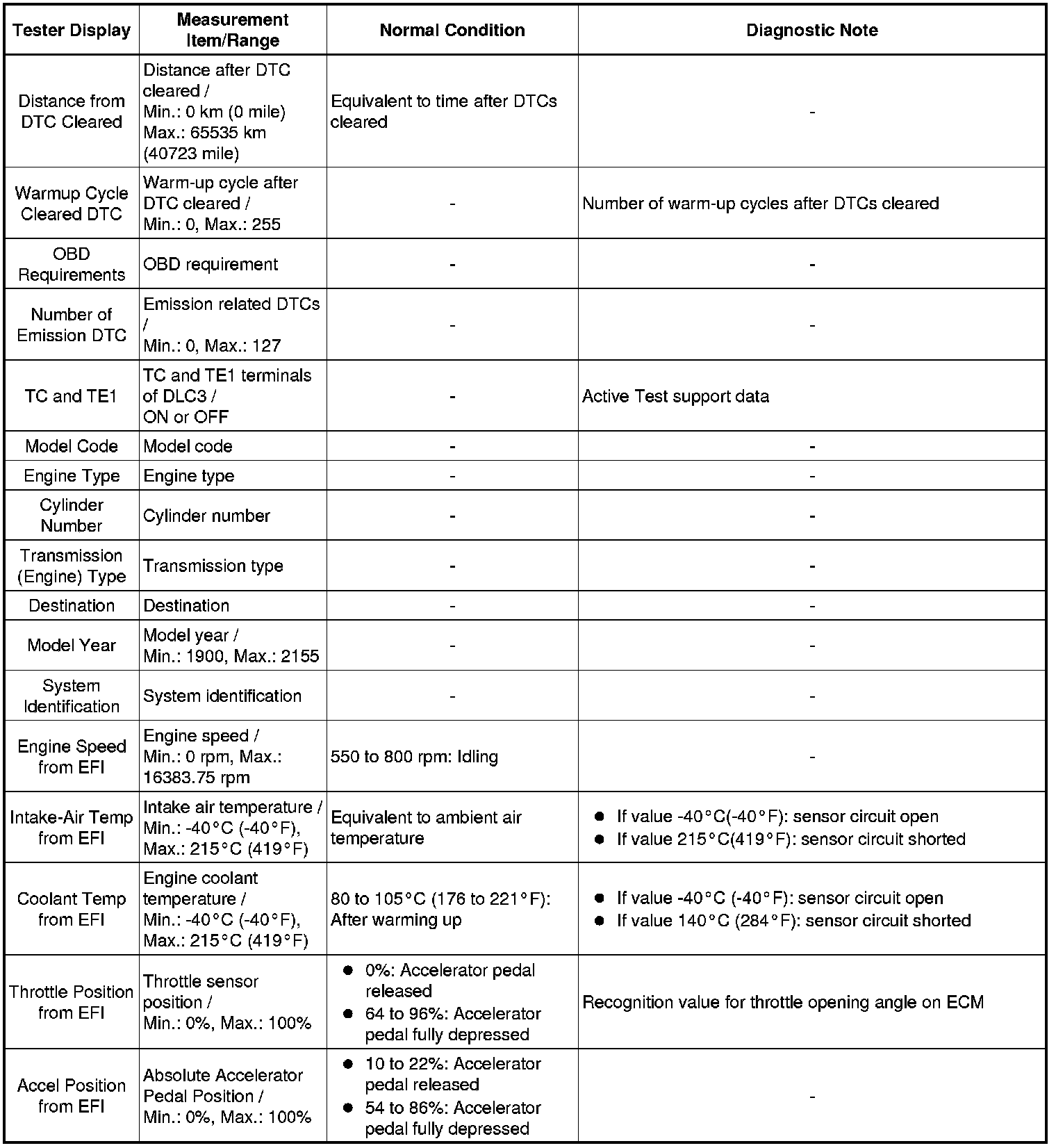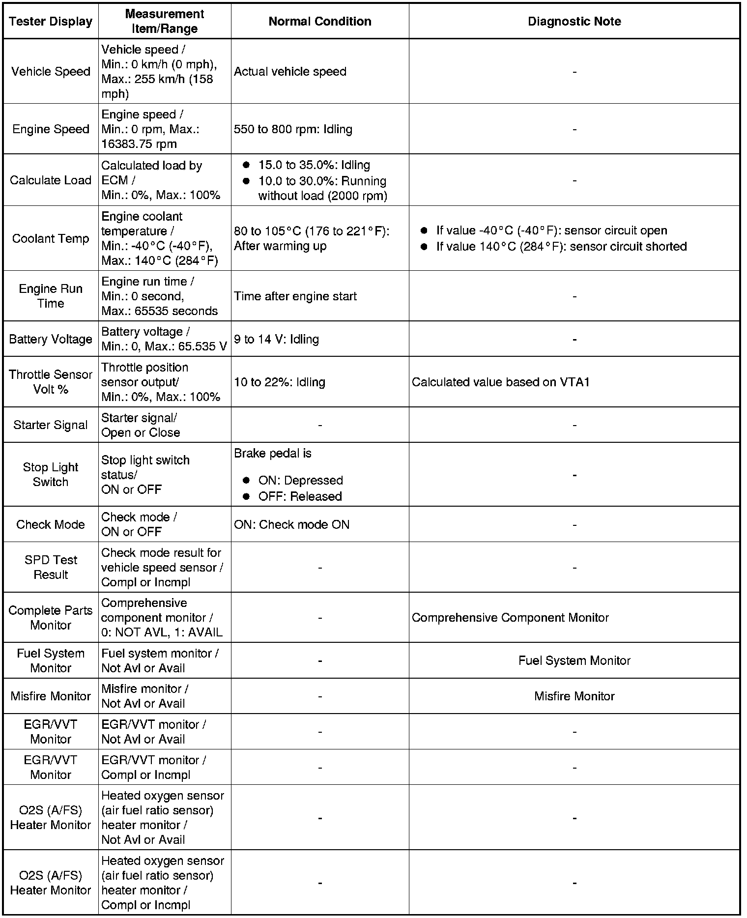 Using the Techstream to read the Data List allows the values or states of switches, sensors, actuators and other items to be read without removing any parts. This non-intrusive inspection can be very useful because intermittent conditions or signals may be discovered before parts or wiring is disturbed. Reading the Data List information early in troubleshooting is one way to save diagnostic time.