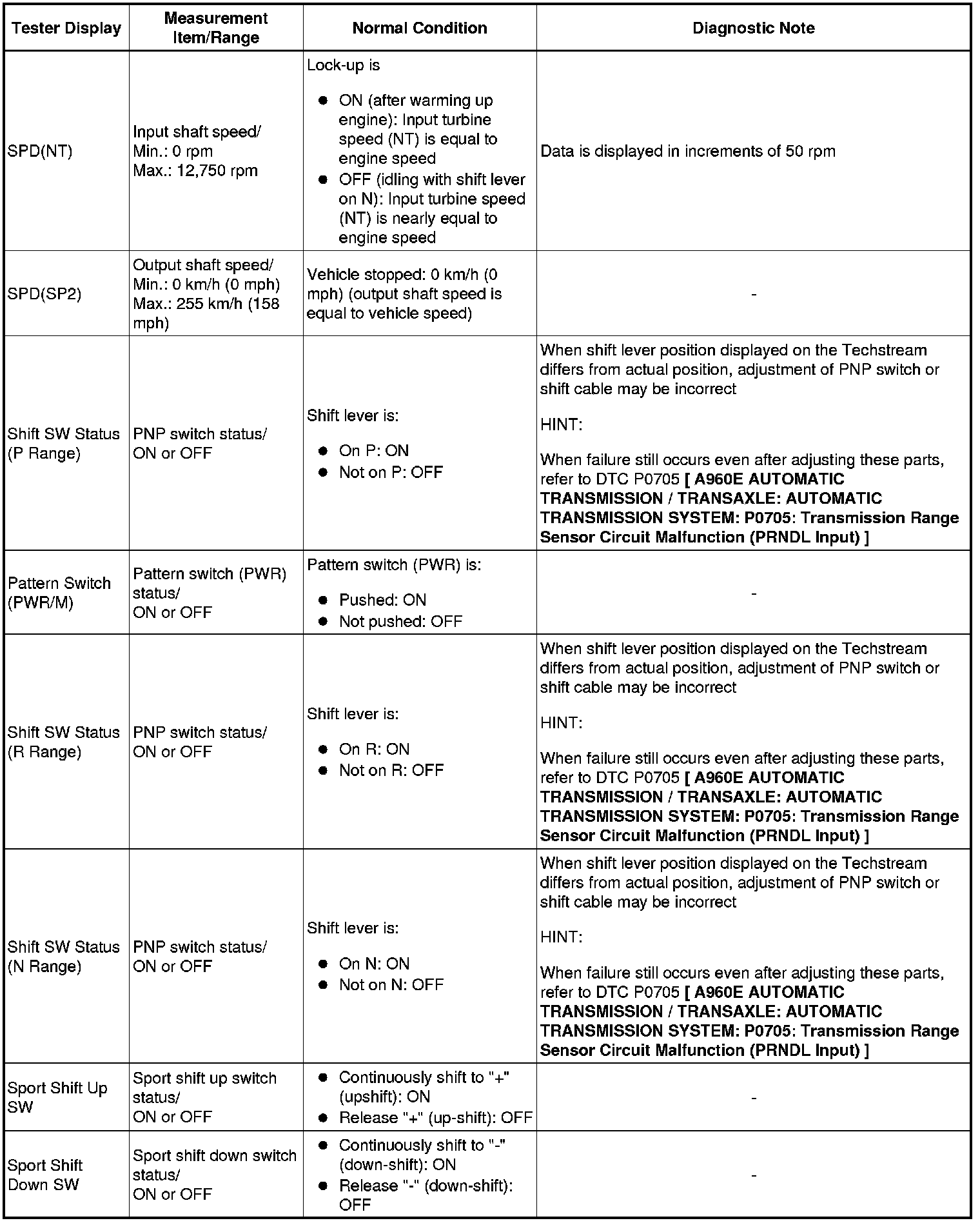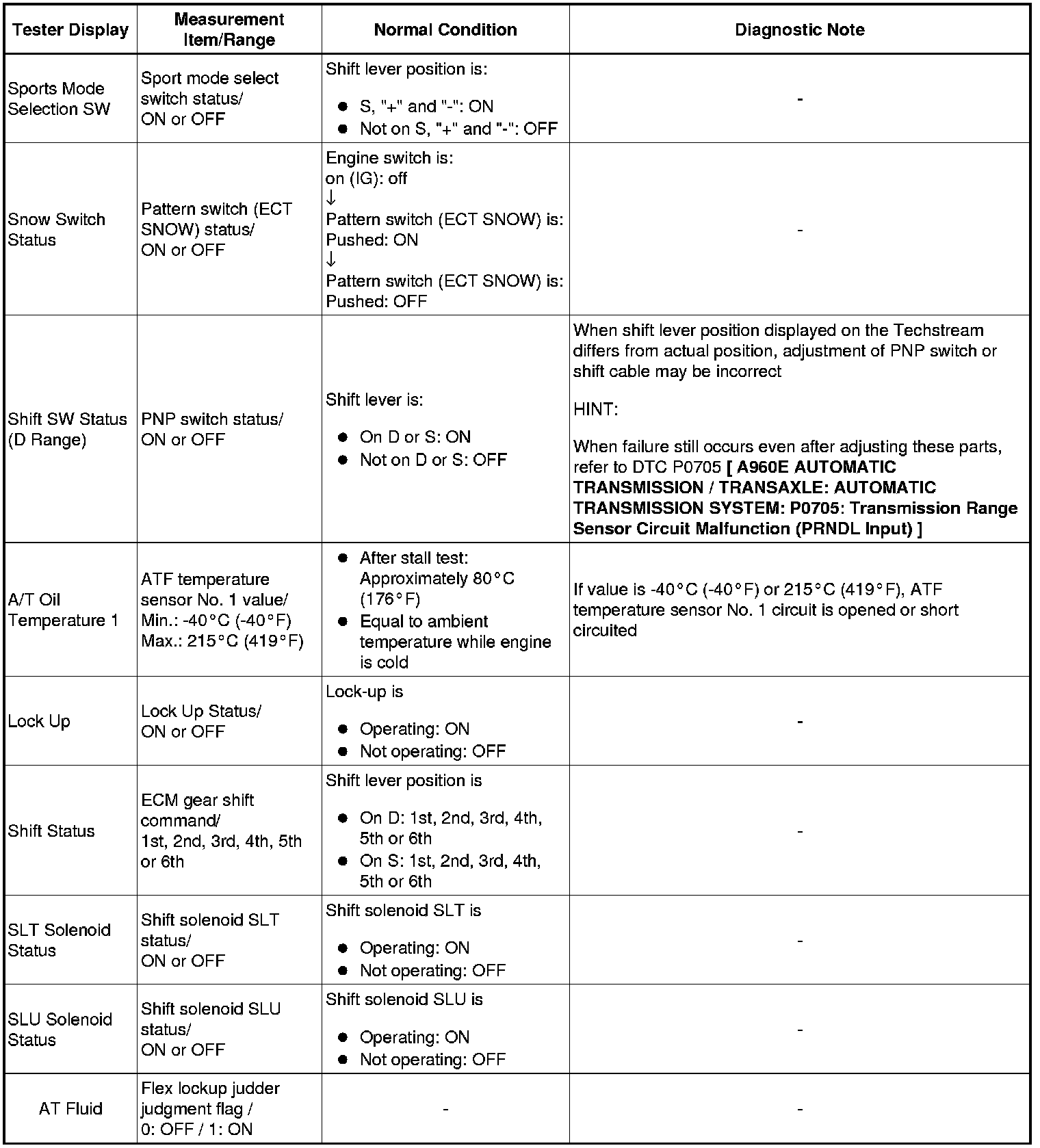 A960E AUTOMATIC TRANSMISSION / TRANSAXLE: AUTOMATIC TRANSMISSION SYSTEM: DATA LIST / ACTIVE TEST