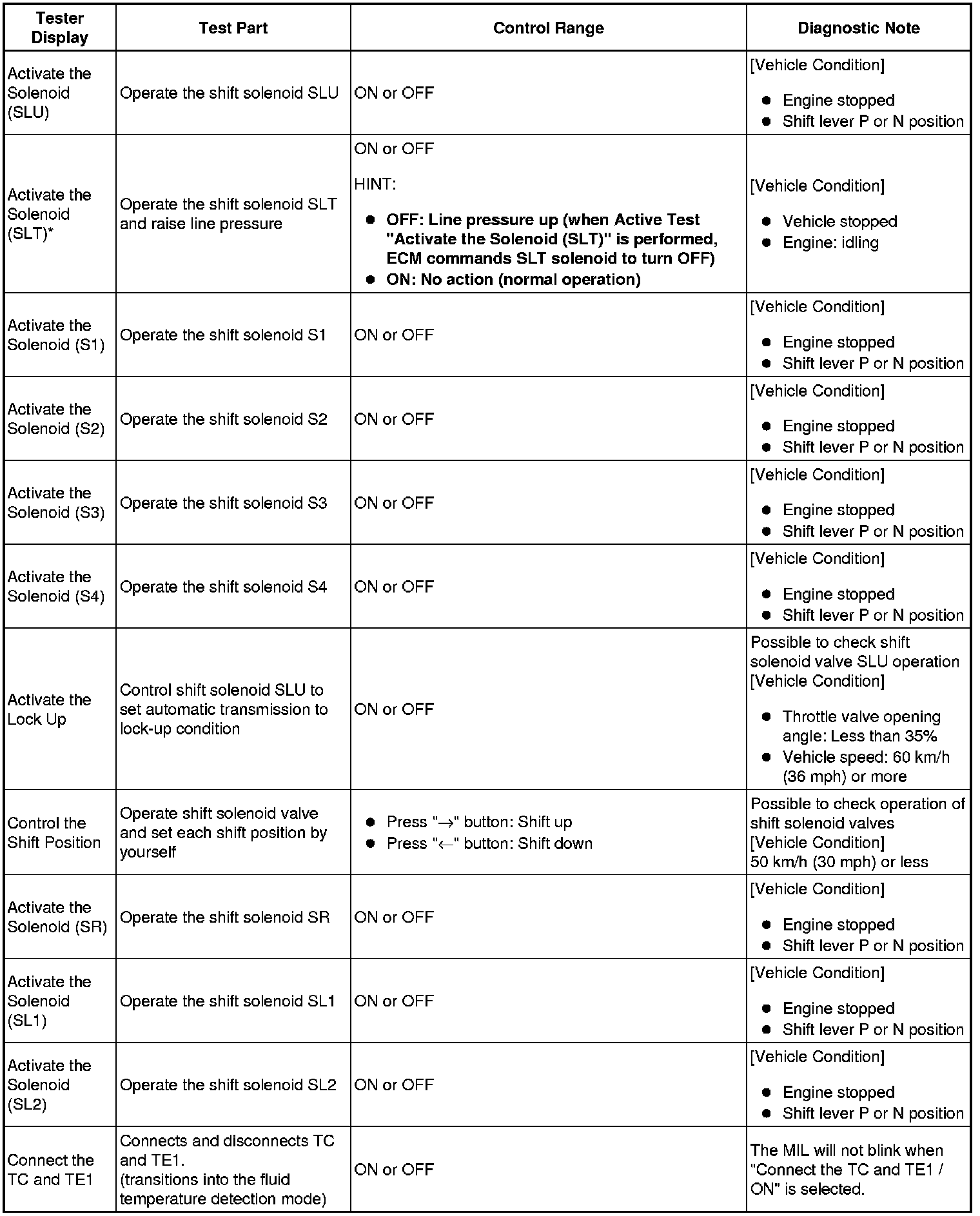 *: "Activate the Solenoid (SLT)" in the Active Test is performed to check the line pressure changes by connecting the SST to the automatic transmission, which is used in the HYDRAULIC TEST Hydraulic Test as well.