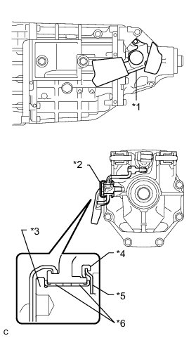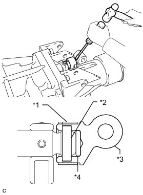 (a) Using a pin punch (5 mm (0.197 in.)) and a hammer, remove the slotted spring pin and shift and select lever shaft support from the shift and select lever shaft.