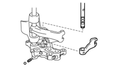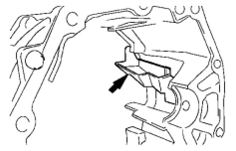 Align the convex portion of the oil receiver pipe with the cutout of the front case and install the oil receiver pipe onto the front transmission case.