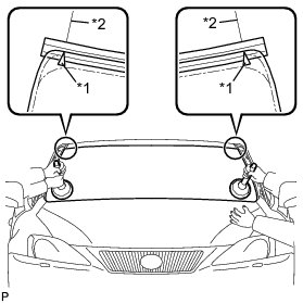 (3) Place reference marks between the glass and vehicle body.