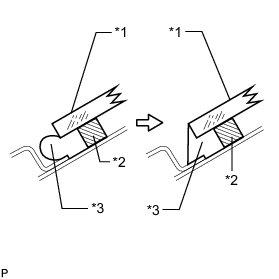 (b) Install 2 new No. 2 windshield glass stoppers onto the windshield glass, as shown in the illustration.
