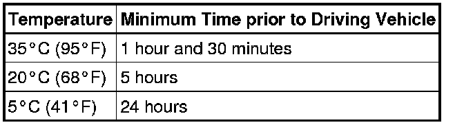 Do not drive the vehicle for the time described in the table below.
