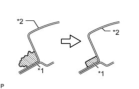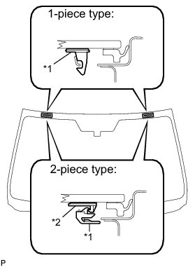 * There are No. 1 and No. 2 stoppers on the windshield glass as shown in the illustration. Be careful not to damage the windshield glass when cutting off the adhesive.