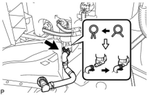 (c) Connect the No. 2 headlight cleaner hose to the headlight cleaner motor and pump assembly with the clip as shown in the illustration.