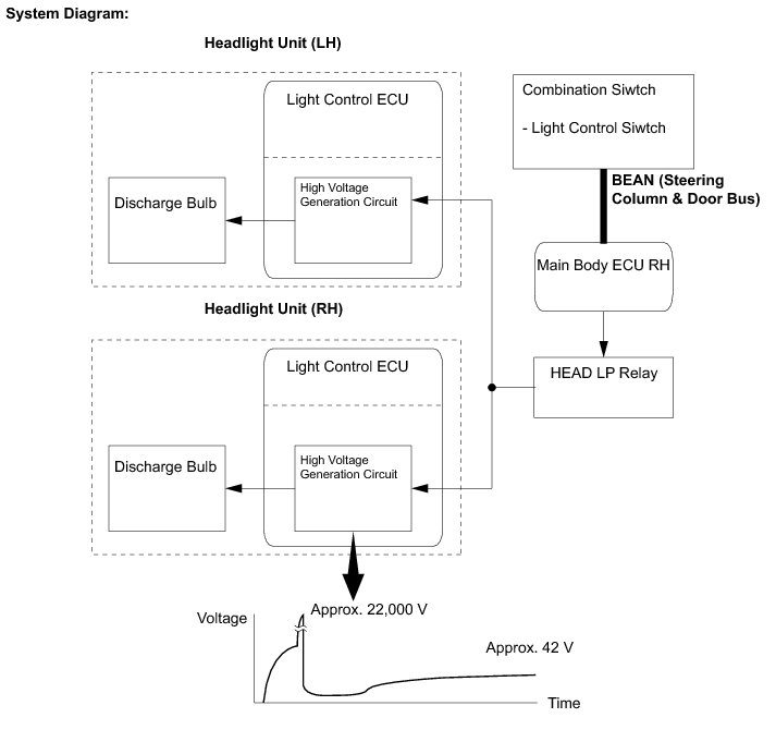 (a) This system consists primarily of the light control switch, windshield wiper SW assembly, main body ECU RH, HEAD LP relay, discharge bulbs, and light control ECUs.