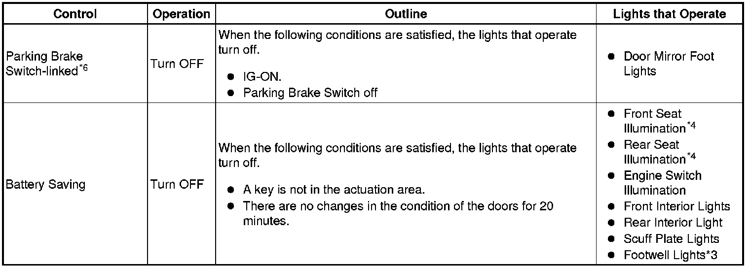 *3: The footwell lights go off when the light control rheostat is adjusted to the minimum level.