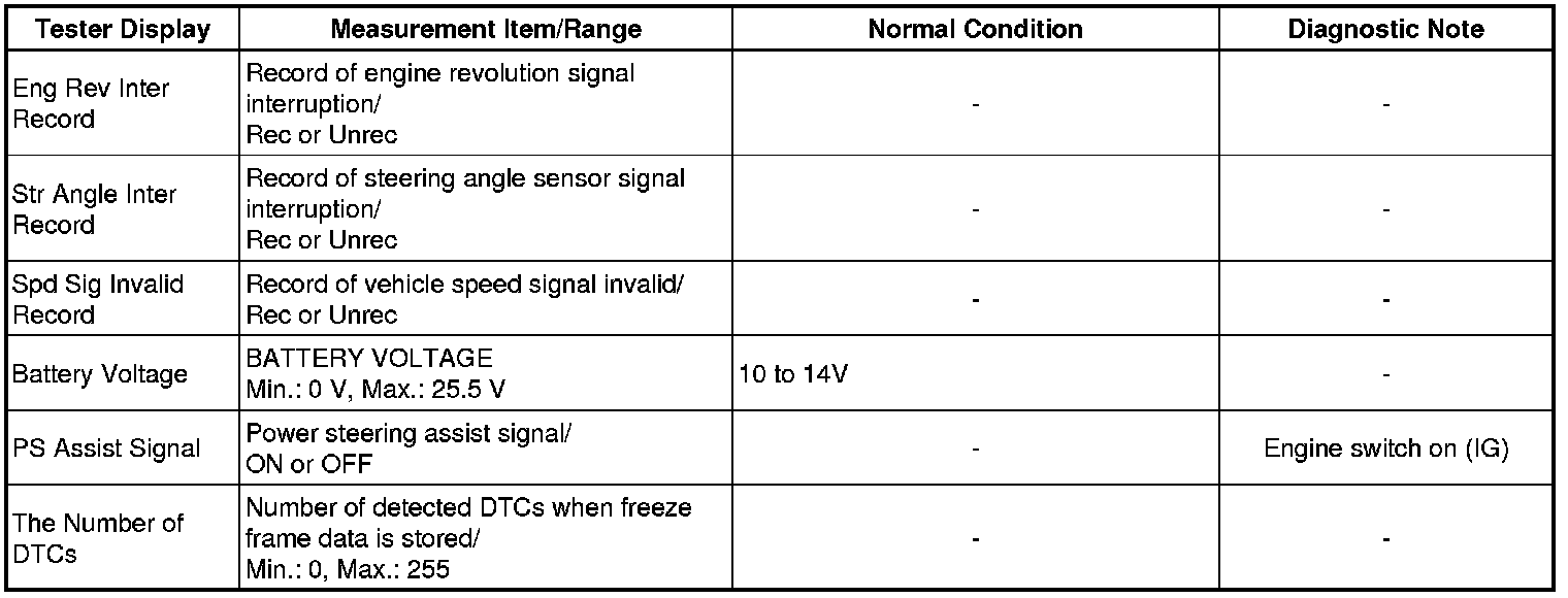 POWER STEERING: POWER STEERING SYSTEM: DATA LIST / ACTIVE TEST