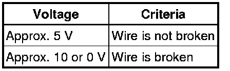 If there is approximately 10 V, the wire may be faulty between the center of the wire and the wire and on the battery side. If there is no voltage, the wire may be faulty between the center of the wire and the wire end on the ground side.