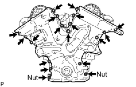 (a) Remove the 16 bolts and 2 nuts as shown in the illustration.