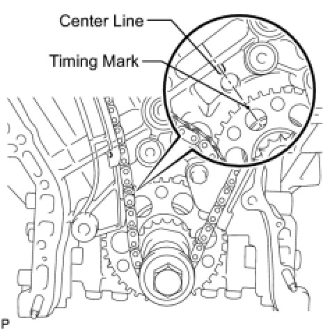 (c) Check that the timing marks of the camshaft timing gears are aligned with the timing marks of the bearing cap as shown in the illustration.