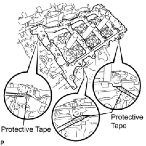 (a) Remove the camshaft housing sub-assembly RH by prying between the cylinder head and camshaft housing sub-assembly RH with a screwdriver.